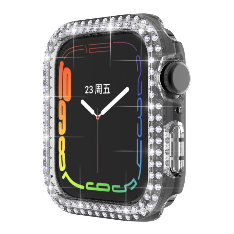 Schützen Sie Ihre Apple Watch Series 7 / 8 41mm mit dieser stilvollen PC Halbhülle, die nicht nur einen hervorragenden Schutz bietet, sondern auch modisch ist. Hergestellt aus hochwertigem PC-Material, ist sie leicht und haltbar, was sie ideal für den täglichen Gebrauch macht. Die zwei Reihen von Rhinestones sorgen für einen exquisiten Look, der Ihre Uhr zum Blickfang macht. Durch die präzisen Ausschnitte können Sie alle Funktionen Ihrer Uhr uneingeschränkt nutzen, während die Abdeckung gleichzeitig die Kanten der Uhr vor Staub, Kratzern und Stoßschäden schützt. Sie lässt sich perfekt an Ihrer Uhr anbringen und ist einfach zu installieren und wieder zu entfernen – eine perfekte Kombination aus Design und Funktionalität für jeden, der seine Smartwatch stilvoll schützen möchte.