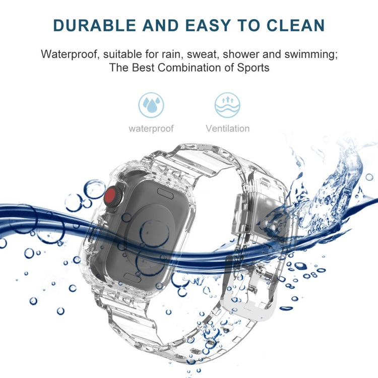 Das Armband für die Apple Watch Series 9 / 8 / 7 41mm / 6 / 5 / 4 / SE / SE (2022) / SE (2023) 40mm / 3 / 2 / 1 38mm besteht aus hochwertigem TPU-Material, das verschleißfest ist und hohen Tragekomfort bietet. Es lässt sich einfach installieren und bietet durch mehrere Löcher eine einfache Größenanpassung. Mit dem integrierten Design aus Uhrenarmband und Uhrengehäuse erhalten Sie nicht nur einen stilvollen Look, sondern auch einen optimalen Schutz für Ihre Uhr.