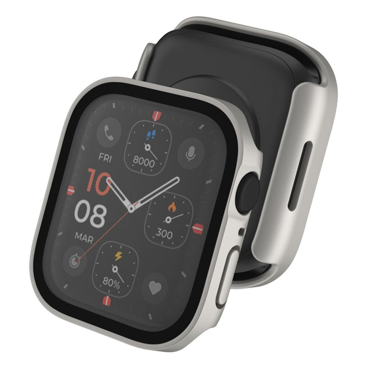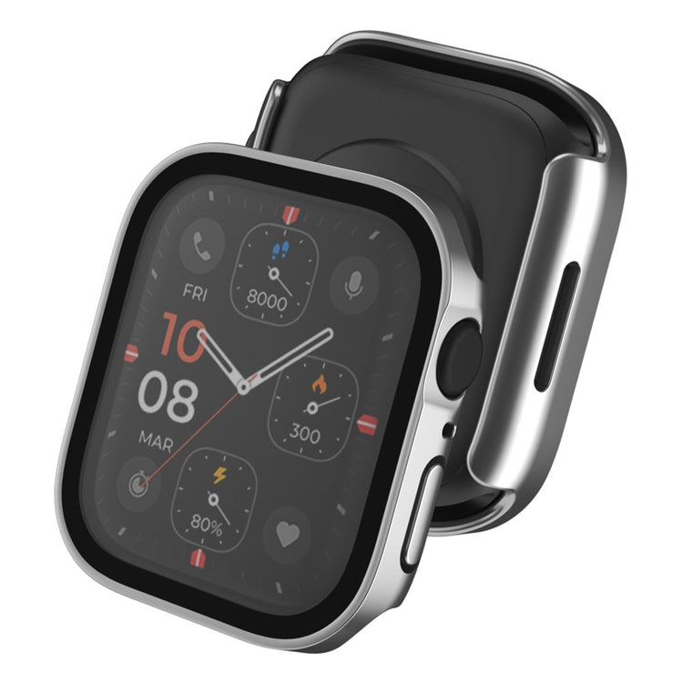 Mega Fed Apple Watch Series 8 (45mm) / Apple Watch Series 7 45mm Cover med Skærmbeskytter i Plastik og Hærdet Glas - Sølv#serie_10