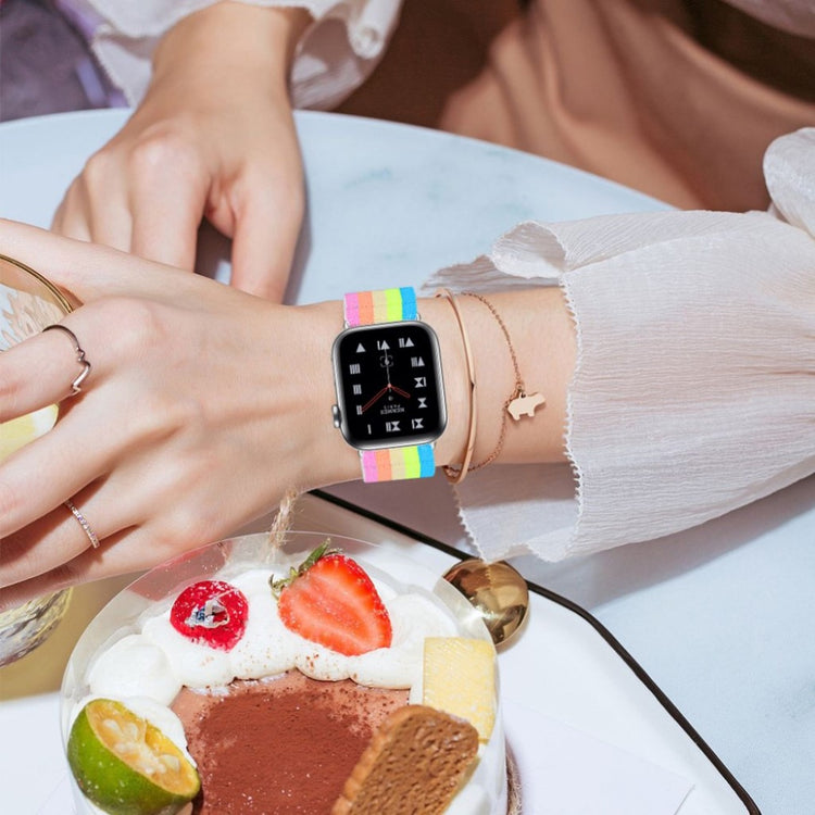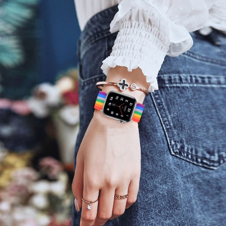 Verpassen Sie Ihrer Smartwatch mit dem ersatz geflochtenen elastischen Armband für die Apple Watch Series 6/5/4/SE 40mm und Series 3/2/1 38mm einen frischen Look! Dieses personalisiertes Armband aus hochwertigem geflochtenem Material bietet eine erstklassige Verarbeitung und ist nicht nur weich, sondern auch elastisch, was für ein ausgesprochen angenehmes Tragegefühl sorgt. Dank des praktischen Buckle-Designs lässt sich die Größe mühelos anpassen, sodass Sie immer den perfekten Sitz genießen können. Dieses Uhrenarmband ist die ideale Alternative für Ihr altes oder beschädigtes Armband und sorgt dafür, dass Ihre Smartwatch jederzeit stilvoll aussieht. Mit einer einstellbaren Größe von 5.3-8.3 Zoll und einer Breite von 25mm stellt es sicher, dass es zu fast jedem Handgelenk passt. Investieren Sie in Qualität und Stil – Ihre Smartwatch wird es Ihnen danken!