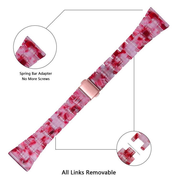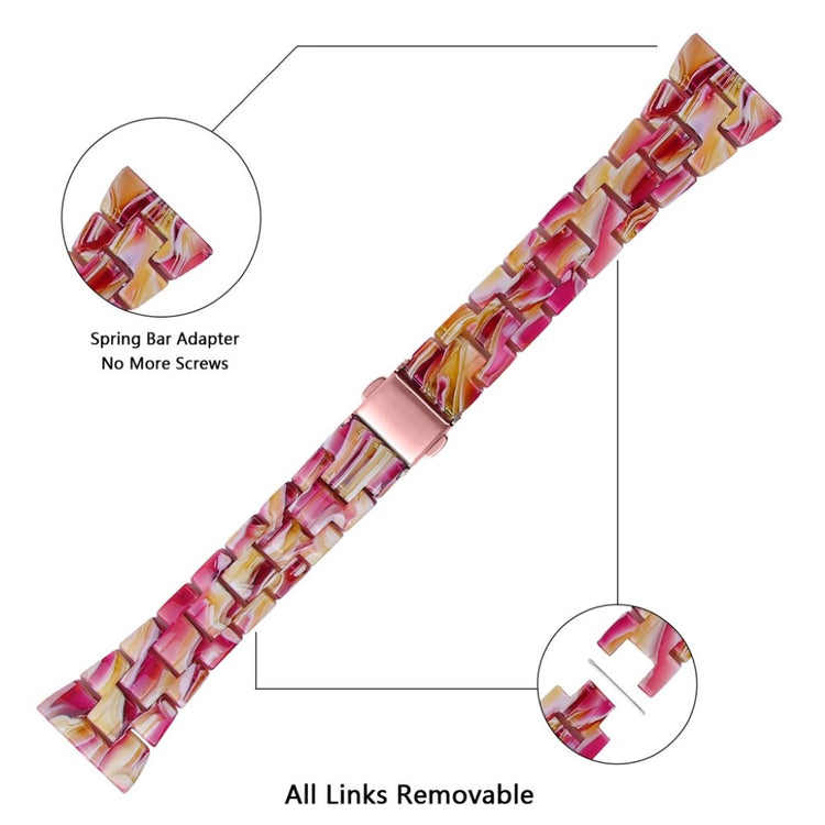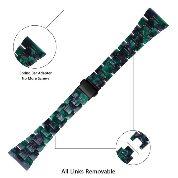 Das Armband besteht aus hochwertigem Harzmaterial, ist wasserfest und rostfrei, was es ideal für den täglichen Gebrauch macht. Es ist leicht und sorgt für ein angenehmes Tragegefühl, während die schnell zu installierenden Adapter eine unkomplizierte Montage ermöglichen. Der fein polierte Verschluss bietet zusätzliche Sicherheit und ermöglicht ein schnelles An- und Ablegen des Armbands.