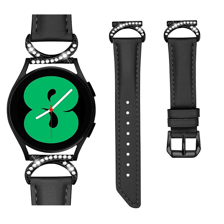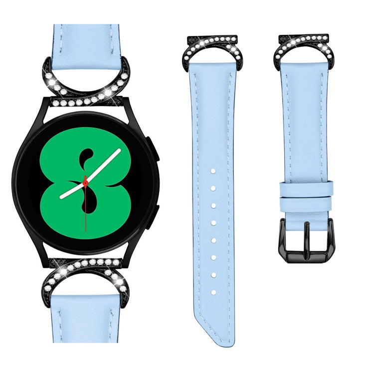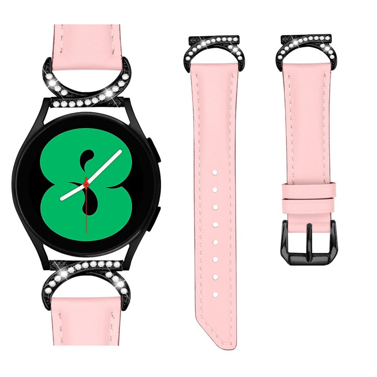 Entscheiden Sie sich für unser Ersatzarmband aus hochwertigem split Leder, das mit exzellenter Handwerkskunst gefertigt ist und dadurch besonders weich und komfortabel ist. Die edlen Rhinestone-Dekorationen und der elegante D-förmige Metallverbinder verleihen Ihrem Armband eine stilvolle Note. Mit einer robusten Edelstahl-Schnalle ausgestattet, ermöglicht das Armband dank des mehrfachen Lochdesigns eine einfache Größenanpassung für optimalen Sitz. Das schräg geformte Ende des Armbands sorgt zudem für einen chicen und ansprechenden Look. Dieses Armband ist die ideale Wahl, um Ihr altes oder beschädigtes Armband zu ersetzen und passt perfekt zur Samsung Galaxy Watch 3 (41 mm) sowie zur Watch 5 (40 mm/44 mm) und anderen 20 mm Uhren. Gönnen Sie sich oder Ihren Liebsten ein neues, stilvolles Accessoire für die Uhr!