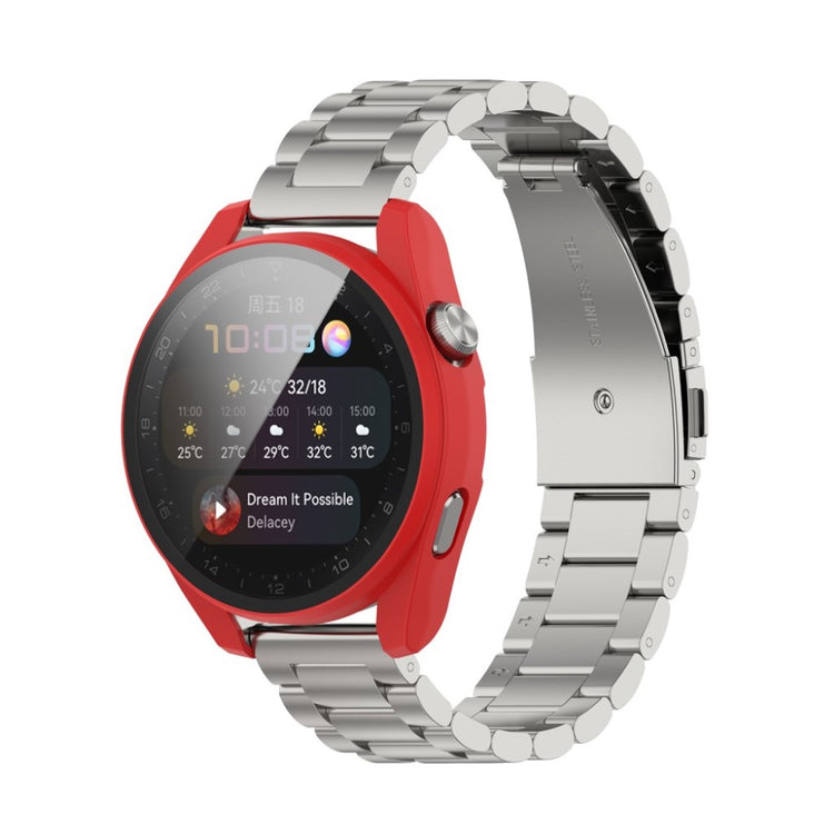 Super Godt Huawei Watch 3 Pro Cover med Skærmbeskytter i Silikone og Hærdet Glas - Rød#serie_4