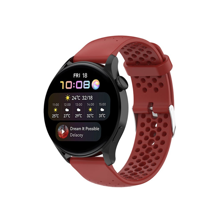 Entscheiden Sie sich für das silikonisierte Armband für Ihre Huawei Watch GT Runner, GT3 46mm oder GT 2 46mm und profitieren Sie von vielen Vorteilen. Hergestellt aus hochwertigem Silikon, bietet das Armband eine außergewöhnliche Bequemlichkeit beim Tragen, dank des innovativen Designs mit vielen atmungsaktiven Löchern. Es ist nicht nur angenehm auf der Haut, sondern auch hautfreundlich und allergiefrei, sodass Sie es ohne Bedenken den ganzen Tag tragen können. Der verschleißfeste Verschluss aus hochwertigem Material gewährleistet eine lange Lebensdauer des Armbands. Darüber hinaus ermöglicht das verstellbare Design mit mehreren Löchern eine einfache Anpassung an Ihre Handgelenkgröße, ideal für einen perfekten Sitz. Egal ob bei der Arbeit, in der Freizeit oder bei anderen täglichen Anlässen – dieses Armband ist die perfekte Wahl für Männer und Frauen. Nutzen Sie die Gelegenheit, Ihr altes oder beschädigtes Armband durch dieses stilvolle und praktische Modell zu ersetzen!