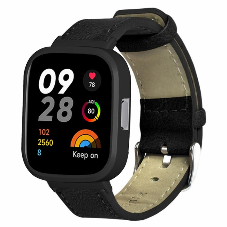 Smuk Kunstlæder Rem passer til Xiaomi Redmi Band 3 - Sort#serie_2