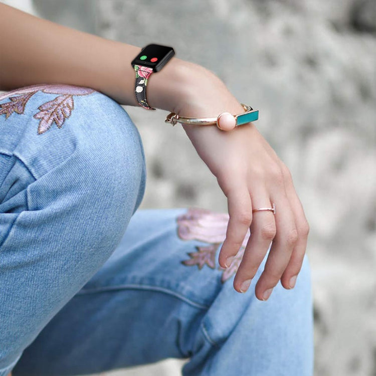 Dieses hochwertige Uhrenarmband aus echtem Leder mit Blumenmuster ist die perfekte Ergänzung für Ihre Smartwatch. Mit seiner mittleren Weichheit bietet es einen angenehmen Tragekomfort.