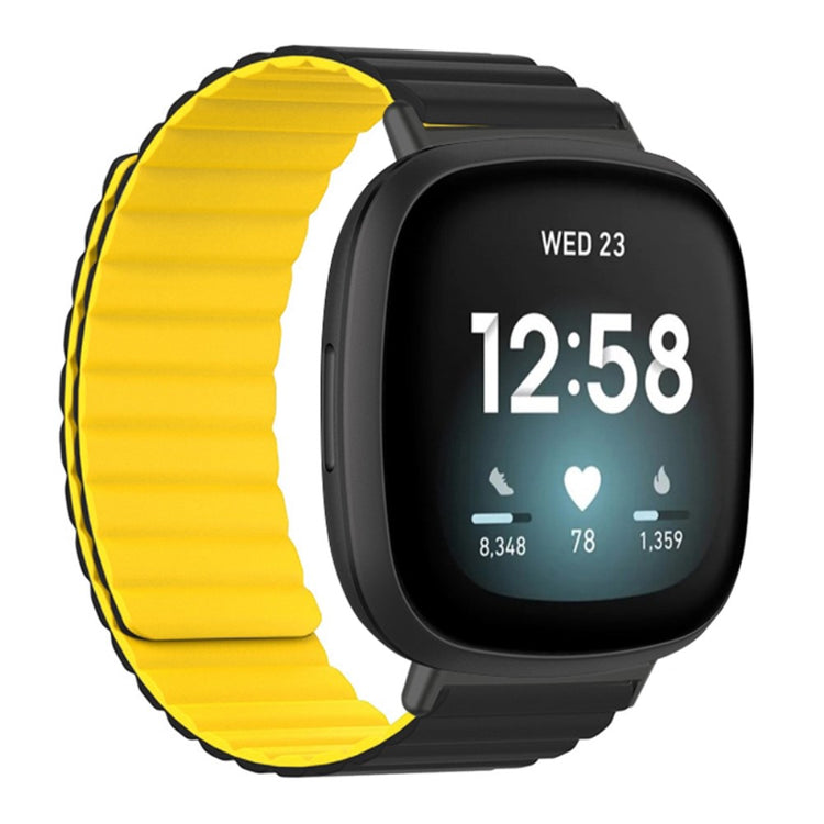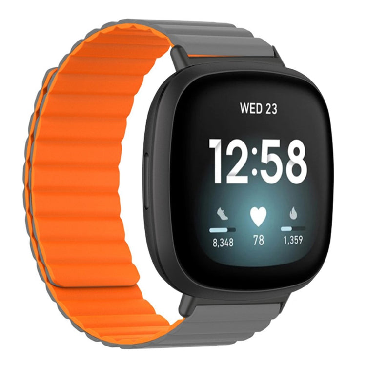 Fitbit Versa 3 / 4 / Fitbit Sense / Sense 2 Flexible Watch Band Magnetic Strap Replacement - Black+Orange