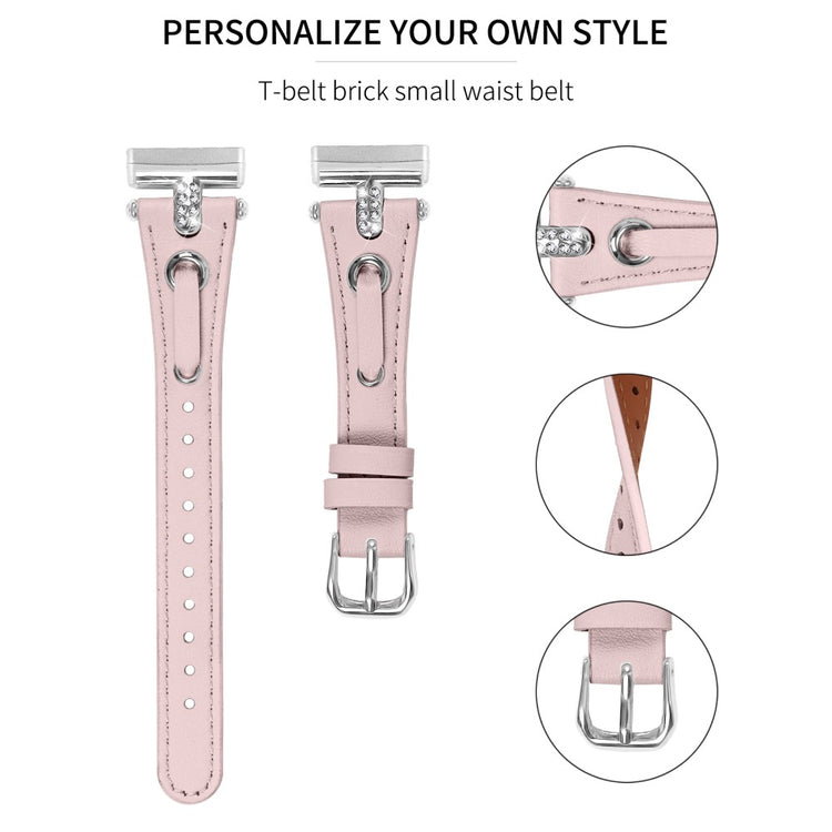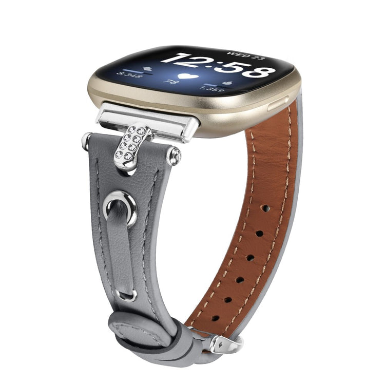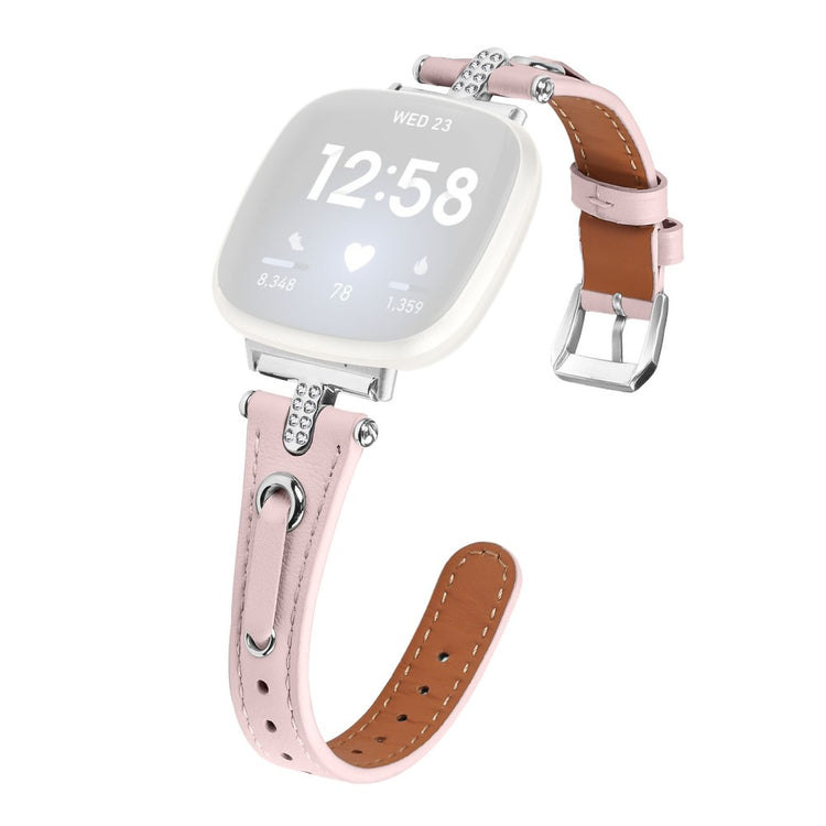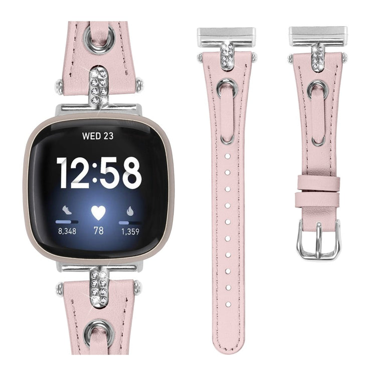 Fitbit Versa 4 / Sense 2 Genuine Cow Leather Strap Rhinestone Watch Wrist Band