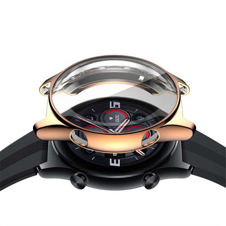 Schützen Sie Ihre Smartwatch mit dem schützenden Rahmen aus hochwertigem TPU-Material, der sowohl weich als auch haltbar ist. Dieser umfassende Schutzrahmen verbindet eine elegante und modische Optik durch den Elektroplattierungsprozess mit erstklassigem Schutz vor Kratzer und alltäglichen Schäden. Mit der Zeit werden die meisten Uhren Abnutzungserscheinungen zeigen, doch dieser Rahmen verhindert ein Aging und sorgt dafür, dass Ihre Watch immer frisch aussieht. Die Installation ist schnell und einfach, sodass der Schutz Ihres Geräts nur wenige Sekunden in Anspruch nimmt und perfekt zu Ihrer Uhr passt. Schützen Sie Ihre Investition und verleihen Sie Ihrer Smartwatch gleichzeitig einen Hauch von Stil!